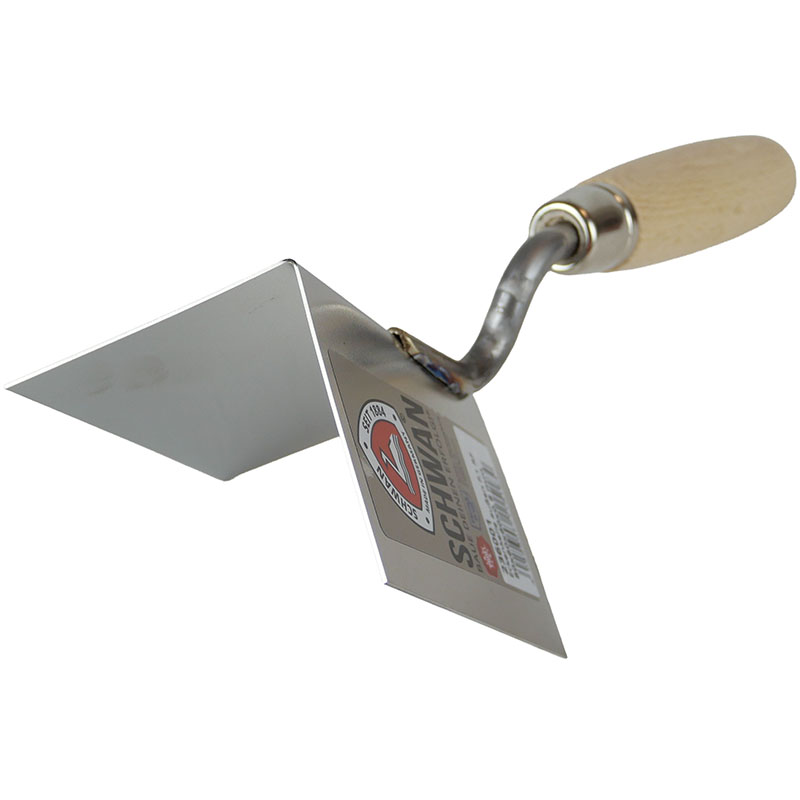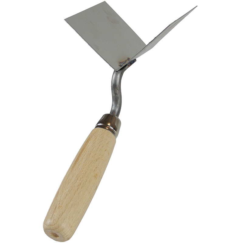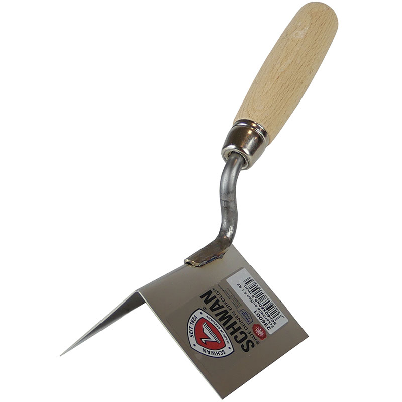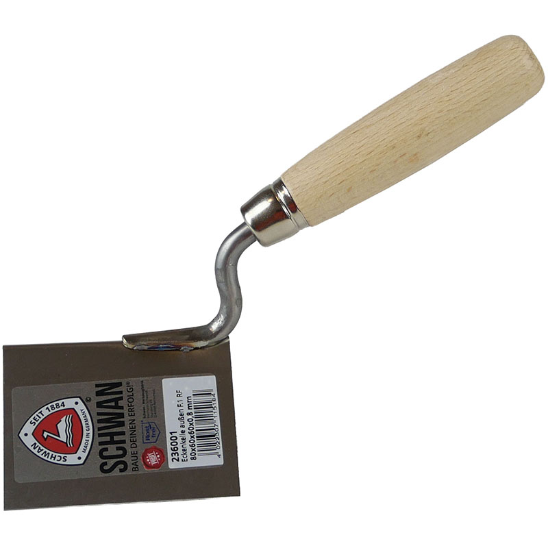 Hochwertige Eckenkelle 90° außen rostfrei aus Edelstahl für präzise Arbeiten, kantig abgewinkelt und in Handwerkerqualität, Made in Germany, leicht und handlich für ermüdungsarmes Arbeiten.