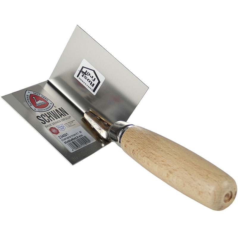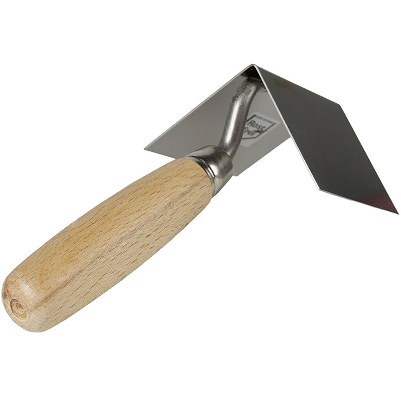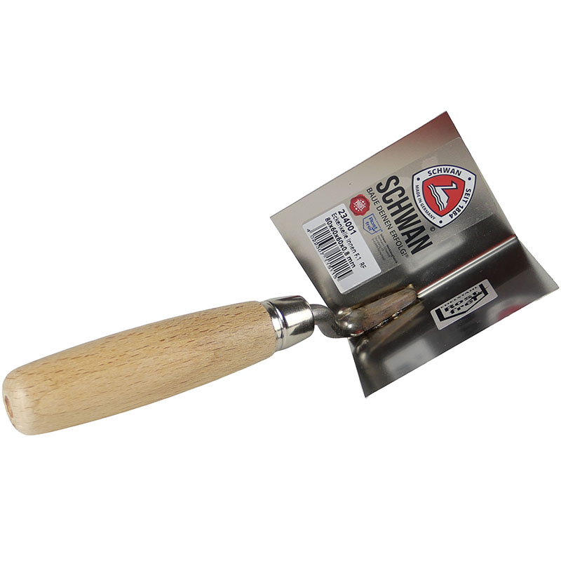 Hochwertige Eckenkelle 90° innen rostfrei aus Edelstahl für präzise Arbeiten, kantig abgewinkelt und in Handwerkerqualität, Made in Germany, leicht und handlich für ermüdungsarmes Arbeiten.