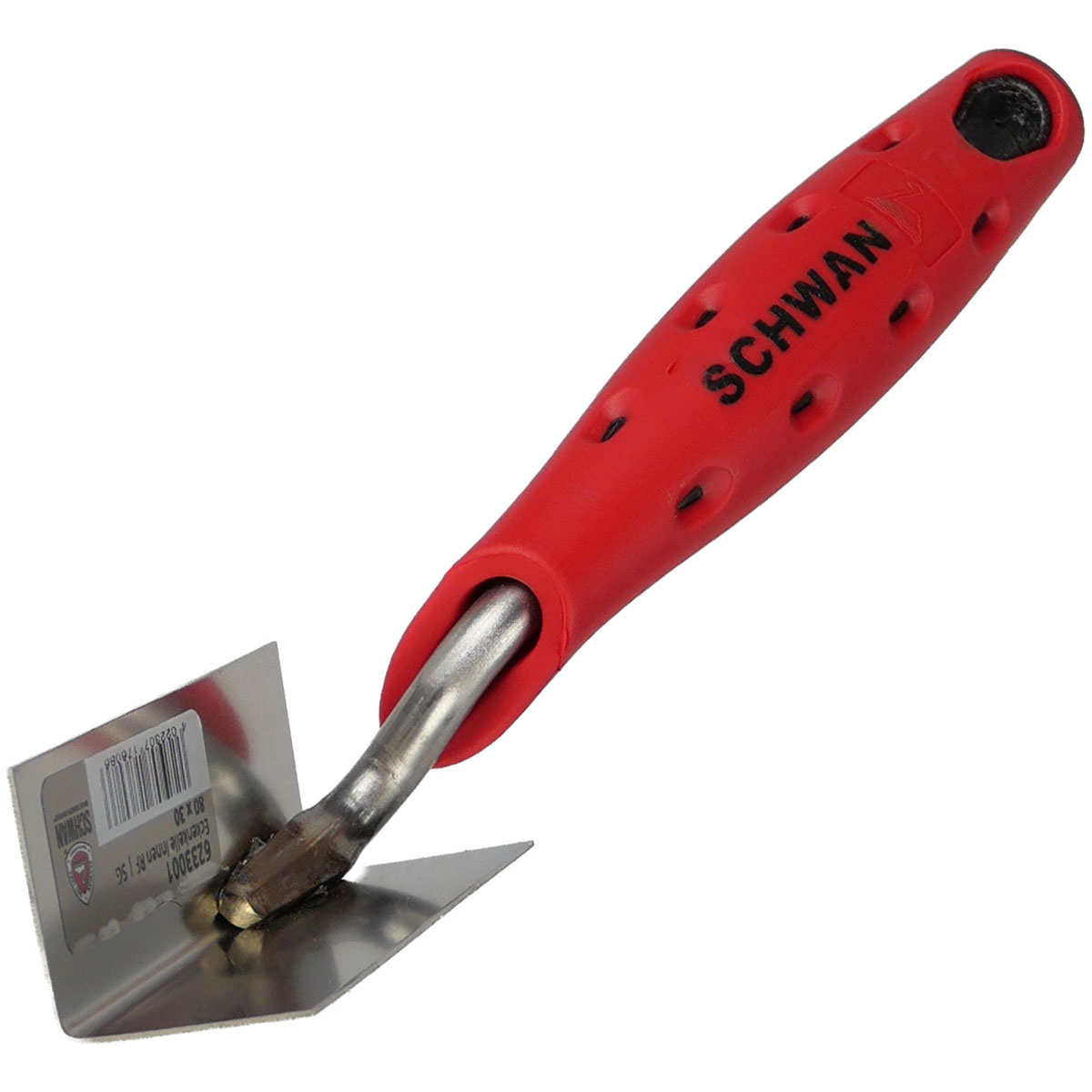 Hochwertige Eckenkelle 90° innen aus rostfreiem Edelstahl in Handwerkerqualität "Made in Germany" mit Softgriff. Leicht und handlich für ermüdungsarmes Arbeiten. Ideal für Verputz-, Maurer- und Trockenbauarbeiten. Diese Eckenkelle ermöglicht saubere und präzise Kantenabschlüsse an Innenenecken, für eine professionelle Oberflächenverarbeitung.