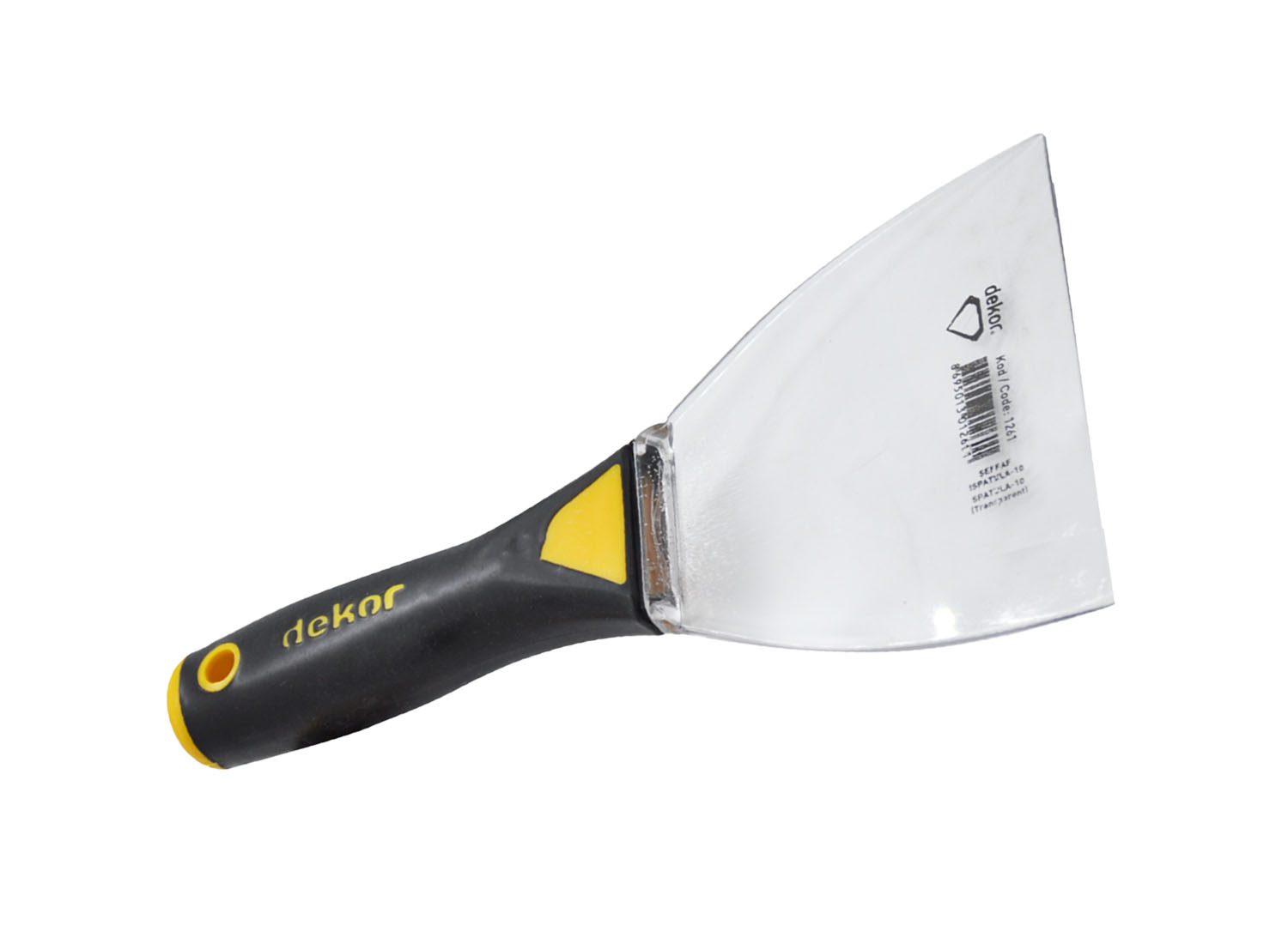 Der Handwerker verfügt mit diesem DEKOR Kunststoffspachtel transparent über ein vielseitiges Arbeitsgerät, mit welchem nicht nur Werkstoffe breiiger Konsistenz verarbeitet werden können, sondern er dient auch zum Ablösen von Tapeten und Wandbelegen. Der Malerspachtel besteht aus hochfestem, transparenten Thermoplast und der ergonomische Griff liegt sehr gut in der Hand und ist rutschsicher. Hauptsächlich wird der Kunststoffspatel zum Auftragen, Verteilen und Glattstreichen von Materialien wie Putz oder Mörtel verwendet.