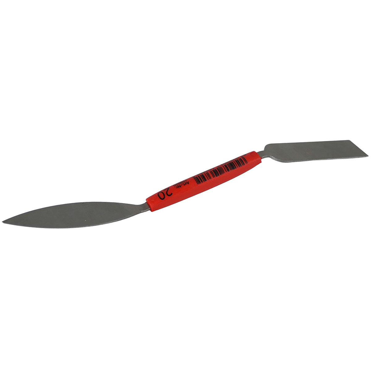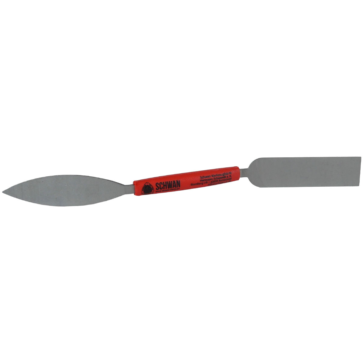 Das Gipseisen / Stukkateureisen mit federnden Blättern besitzt ein Kunststoff-Griffstück. Es hat abgekröpfte, federnde Blätter, eine Seite ist spitz, die andere gerade. Das Gipseisen ist für Renovier- und Restaurierarbeiten an kleinen, bzw. schwer zugänglichen Stellen geeignet. Es eignet sich hervorragend zum Ausbesseren kleiner Löcher und Risse.